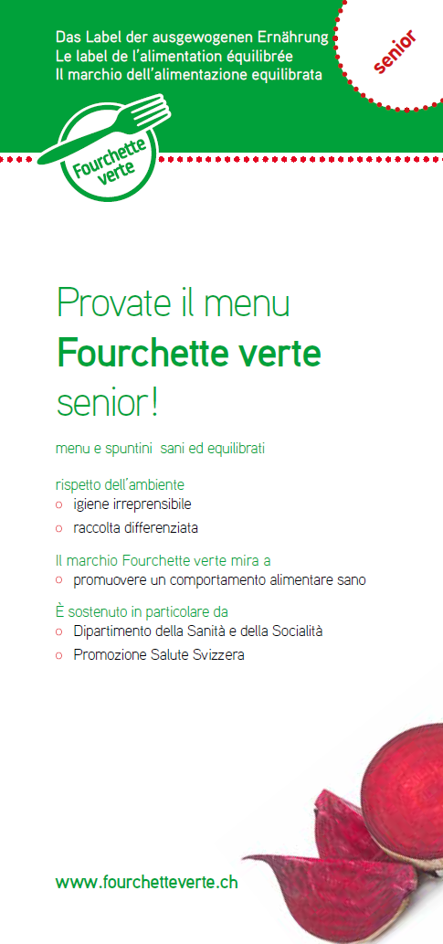 I marchi Fourchette verte e Fourchette verte – Ama terra "senior@home" promuovono un'alimentazione equilibrata e sostenibile per gli anziani che ricevono pasti a domicilio.