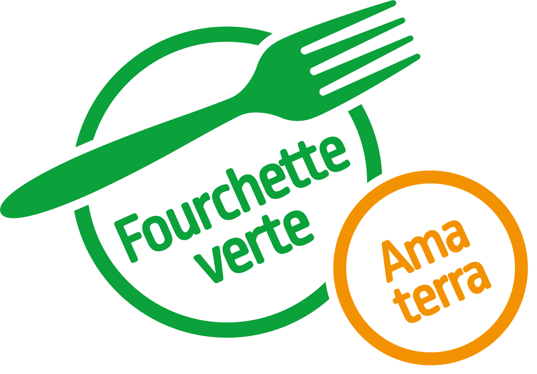 Le label Fourchette verteAma terra propose des critères plus approfondis en matière de durabilité, d’ambiance à table, de choix des fournisseurs et d’origine des aliments.